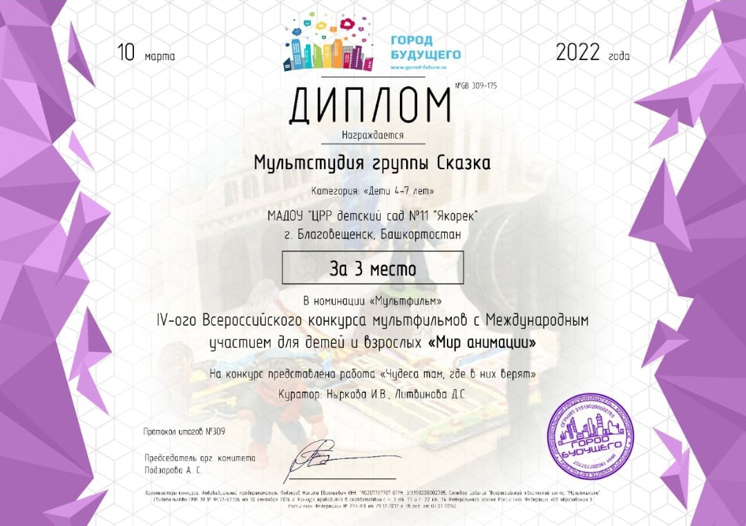 2021 году детский сад «Якорек» стал победителем всероссийского конкурса «Лучший детский сад России».