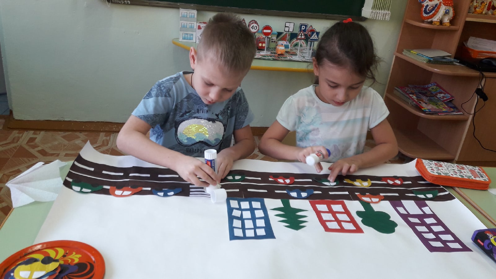 Проводились дидактические игры и упражнения: «Собери машину», «Сломанный светофор», «Можно – нельзя», «Что говорит светофор»; сюжетно – ролевые и подвижные игры: «Водители», «Веселый светофор», «Поведение на улице», "Регулировщик" .Оформили иллюстрированные папки с загадками и стихами о дорожных знаках,сделали подборку художественной литературы по ознакомлению детей с правилами дорожного движения.В продуктивной деятельности выполнили коллективную работу по аппликации