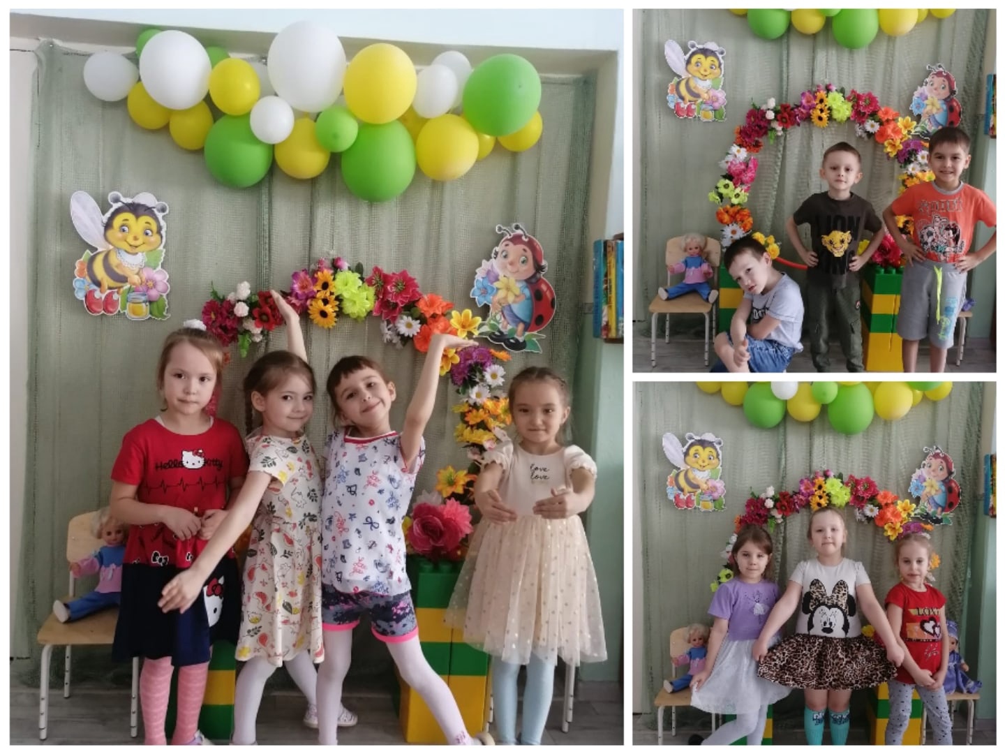 Прошла неделя, посвящённая международному женскому дню 8 Марта. Воспитателями была проведена большая предварительная подготовка к празднику: читали рассказы, проводили беседы о мамах, бабушках, сестрёнках и конечно, готовили подарки: открытки, поделки, рисовали портреты любимых мам, разучивали стихи, песни, танцы,к весеннем празднику в группе оформили фотозону.
