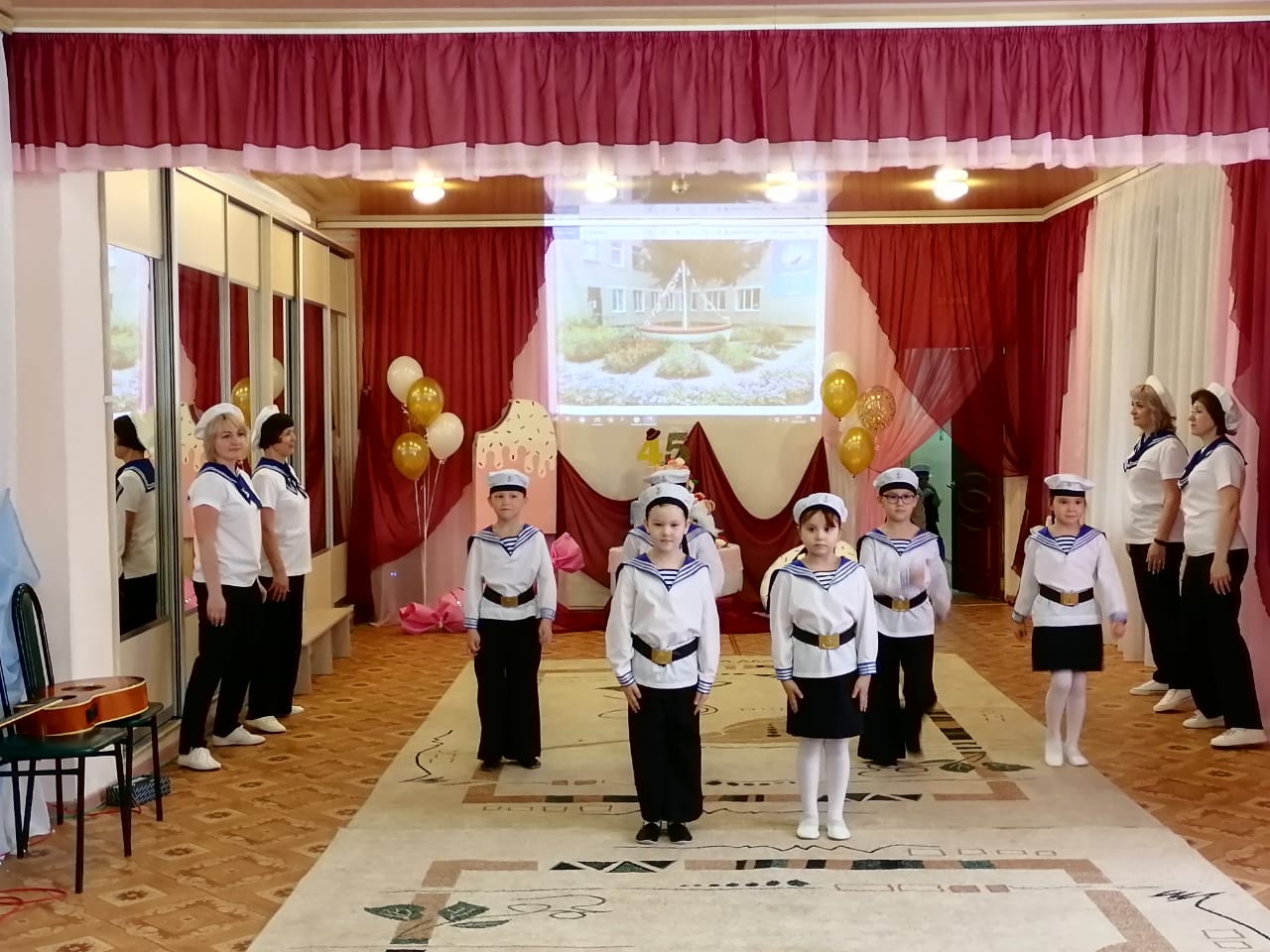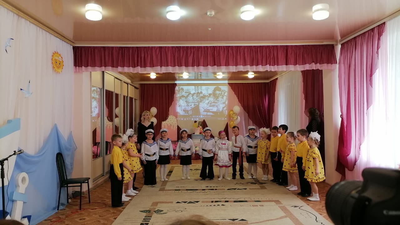 Праздник начался с хореографической композиции «Морячка», в которой приняли участие воспитанники детского сада и сотрудники. После приветственных и благодарственных слов заведующего Михеевой Ирины Николаевны концертную программу продолжила семья Колединых с песней «Главное на свете это наши дети». Прозвучал гимн детского сада, авторами которого являются воспитатели «Якорька». Педагоги исполнили шуточный танец «Варенька».