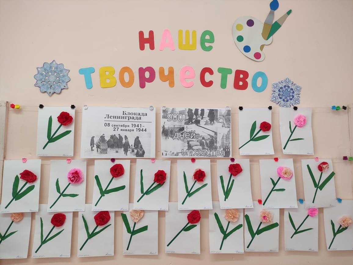 В этот день с воспитанниками групп "Пчёлка" и "Рябинка" было проведено занятие приуроченное к этой дате. Цель данного мероприятия расширить представления детей о героическом подвиге жителей Ленинграда, формировать чувства патриотизма и умение сопереживать. С детьми провели беседы о хлебе, о его роли в жизни ленинградцев в дни блокады, о жизни и занятиях детей в блокадном городе. Наглядно знакомили (показ слайдов) с "Дорогой жизни", "Карточками на хлеб". Никто из ребят не остались равнодушными. Воспитанники почтили память погибших минутой молчания. Свои впечатления об услышанном дети передали в рисунках. П в группе "Пчелка" ребята выполнили открытку "Гвоздика" в память о погибших и нарисовали рисунки